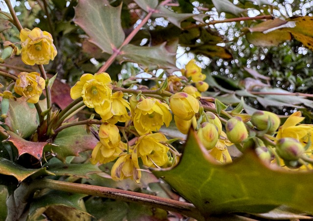 先住苗のヒイラギナンテン。こちらはよく咲いてくれます。ただ、周りにこぼれ種から名前の知らない木が育ってきて、整理しなければ!