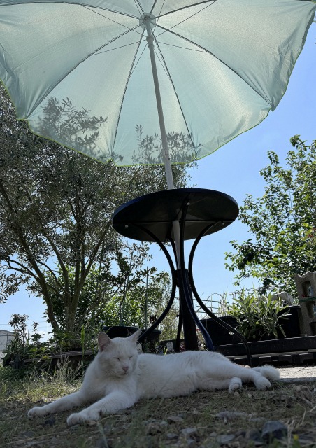 ご近所猫にもパラソルを開いて日陰を作ってあげるという下僕な毎日(笑)