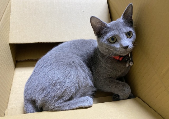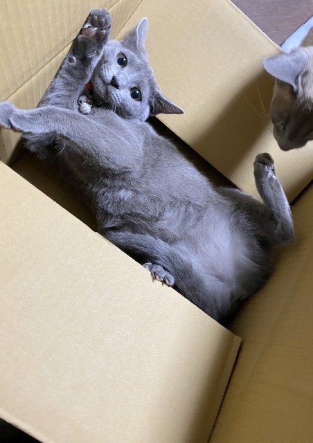 猫はダンボール好き、猫あるあるですね (=^・^=)