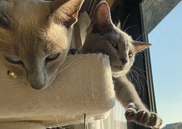 この新猫 ( シャム猫 ) と愛猫 ( ロシアンブルー ) ですが、こんなに仲良くしていたのに、いつの間にか愛猫がマジ切れするほどのケンカをするようになって、どうしたものかと思っていました。