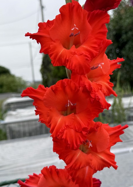 夏の定番・グラジオラスですが、これは枯れてしまったイチゴの後に残っていた一球を植えておいたもの。色はわかりませんでしたが、イチゴに合わすかのように真っ赤。とはいえ、一本だけ目立っていてバランスの悪いこと(笑)
