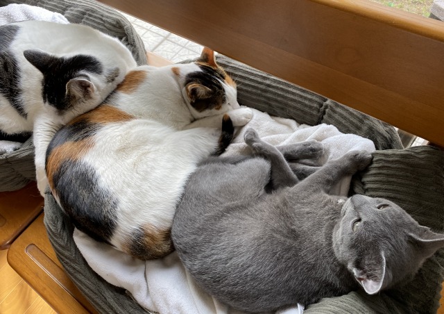 別の日、大きいお姉ちゃんと一緒。この2にゃんとなら安心して寝れるね。