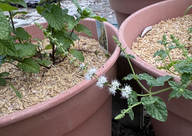 こちらは先日、一鉢50円だったので5種 ( パイナップル、ラベンダー、ペパーミント、ストロベリー、グレープフルーツ ) を大人買い(笑)したミント。中でもストロベリーが開花しました。とりあえず鉢管理ですが、どこかにワサワサさせたい気分です。