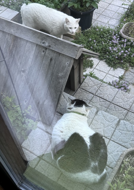 その血筋がものをいうのか?妹猫同様にご近所猫が大嫌い!しかし、襲われたことはありません。ご近所猫は男の子なので大きいですが、多分、体重は末猫の方があるのでは?