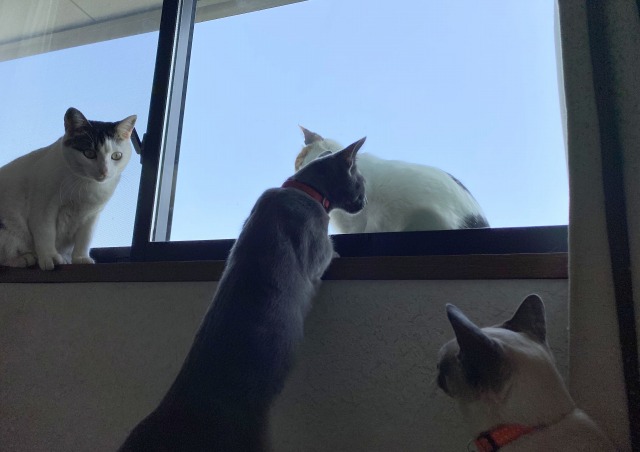 姉ちゃん、すごい?!と集まる猫んず(笑)