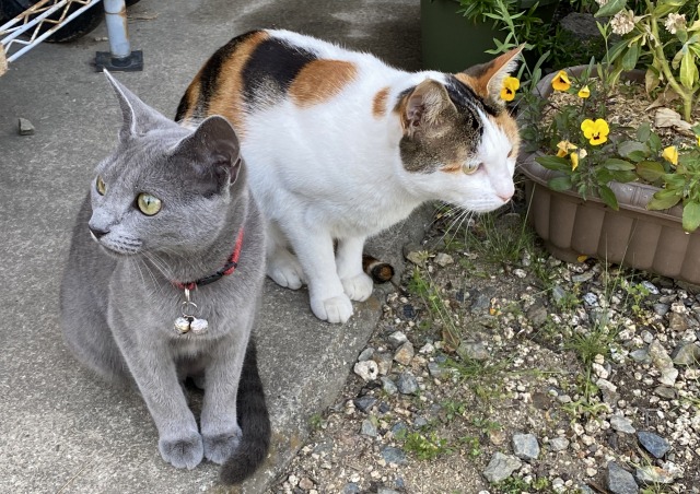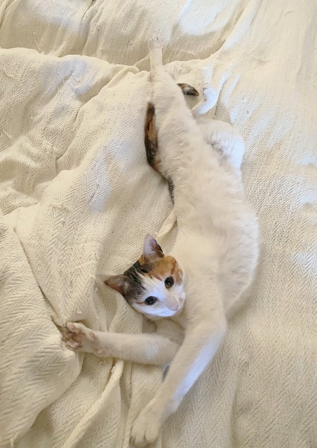 妹猫は、ベランダから屋根に飛び降り、鳴けば私が寝室の窓を開けるの知っています。下僕の私、使われています (^^ゞ