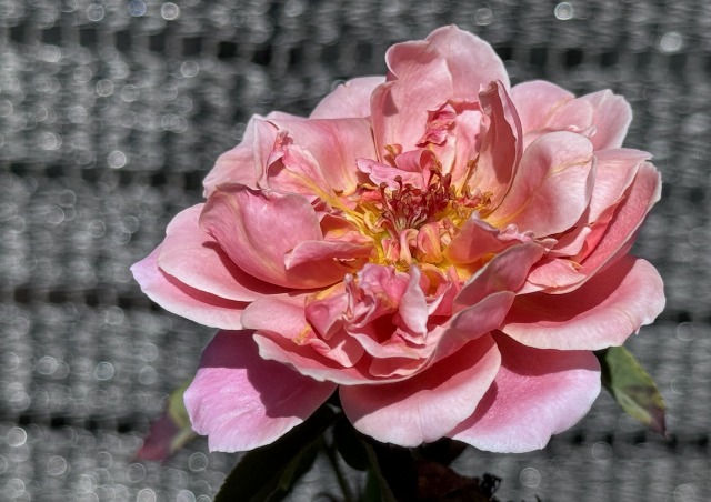 一目惚れしてお迎えしたバラのピンクビンテージも開花 ♫でも、体力温存が第一。すぐに切って一輪挿しにして楽しんでいます。ならば、ツボミのうちが良かったか (^^ゞ