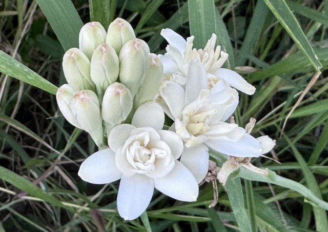 こちらはチューベローズ。道の駅で買った球根からです。夜来香(イエライシャン)とも言うそうで、ふふ、香りがいいです。