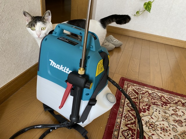 ・・・っとその日、害虫駆除用に電動の噴霧器が到着。駆除といってもニーム等の忌避剤なのですが、手動では嫌になってしまい私の方が作業を忌み嫌っちゃいます (^^ゞそこで思い切って購入しました。やっぱり電動は速い!