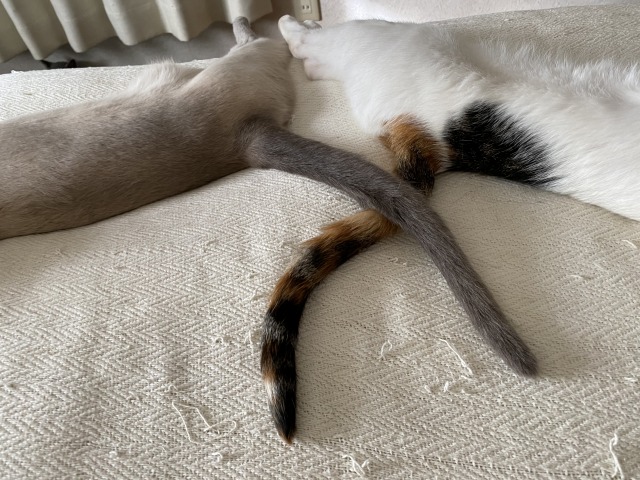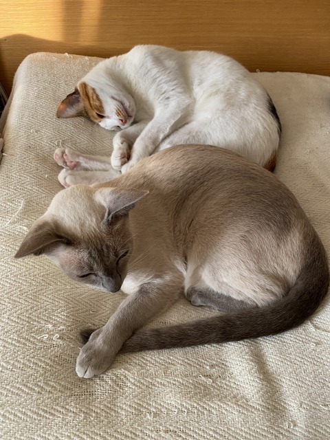 この頃は妹猫、といってもお姉ちゃんですが、よく一緒に寝ていました。妹猫は誰に対しても面倒見がいいお利口にゃんです。