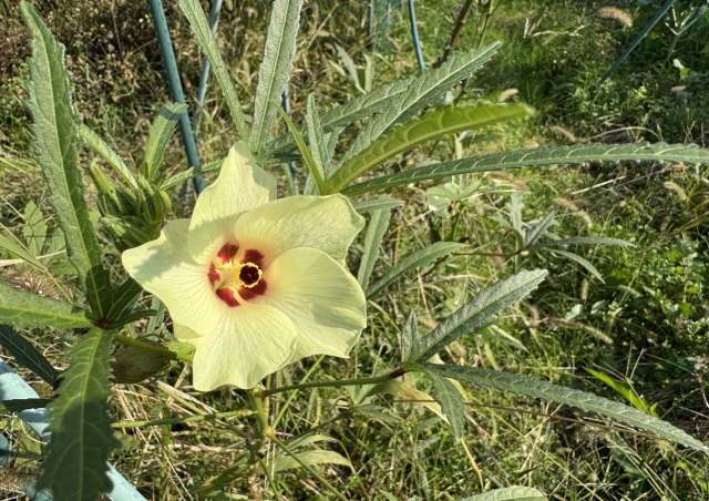 オクラ、まだ頑張って開花してくれます。そろそろお豆を植えたいのでご苦労さまにしたいのですが、このきれいなお花を見るとその気がなくなります (^^ゞ本格的に寒くなる前に植え付けしないと!大忙しの毎日です。