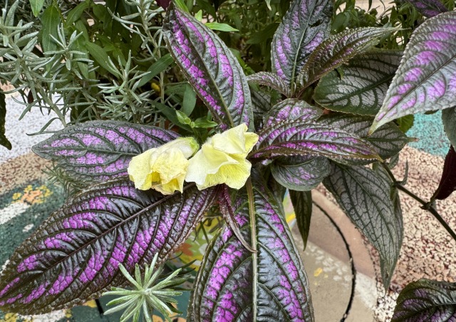 こんな寄せ植えが何鉢もあったのは、先日じいじの付き添いで行った病院内です。食堂が続いていて、食事するときに愛でてもよし、入院中の方でも散歩するのにいいかもしれません。