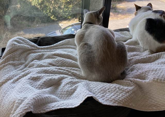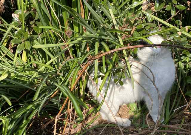 ・・・チビ猫ちゃんは裏の親戚宅の茂みがテリトリーになっているので、うちの猫たちも2階の窓からその姿を追っています。